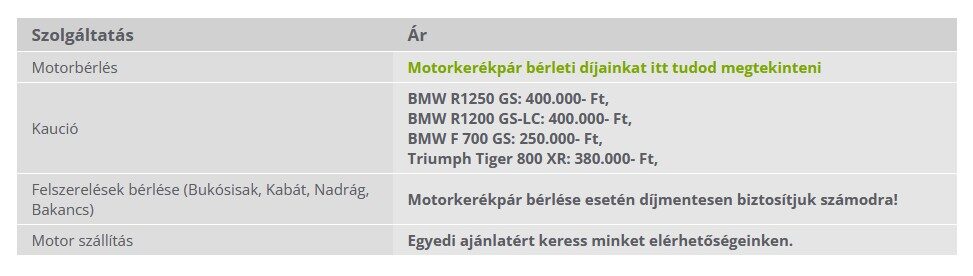 Motorkerékpár bérleti díjainkat itt tudod megtekinteni